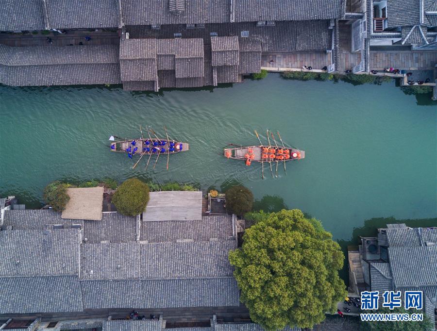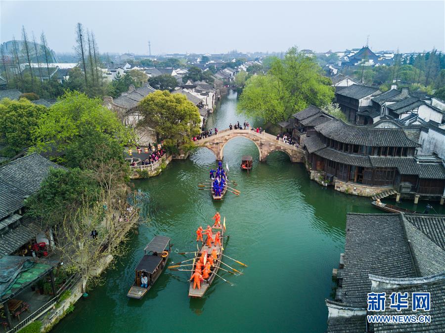 3月29日,烏鎮(zhèn)水鄉(xiāng)百姓在烏鎮(zhèn)西柵景區(qū)參加名為“踏白船”的傳統(tǒng)水上競(jìng)技活動(dòng),吸引游客前來感受水鄉(xiāng)獨(dú)特的民俗風(fēng)情。“踏白船”競(jìng)賽的目的是為了祈求蠶桑豐收。