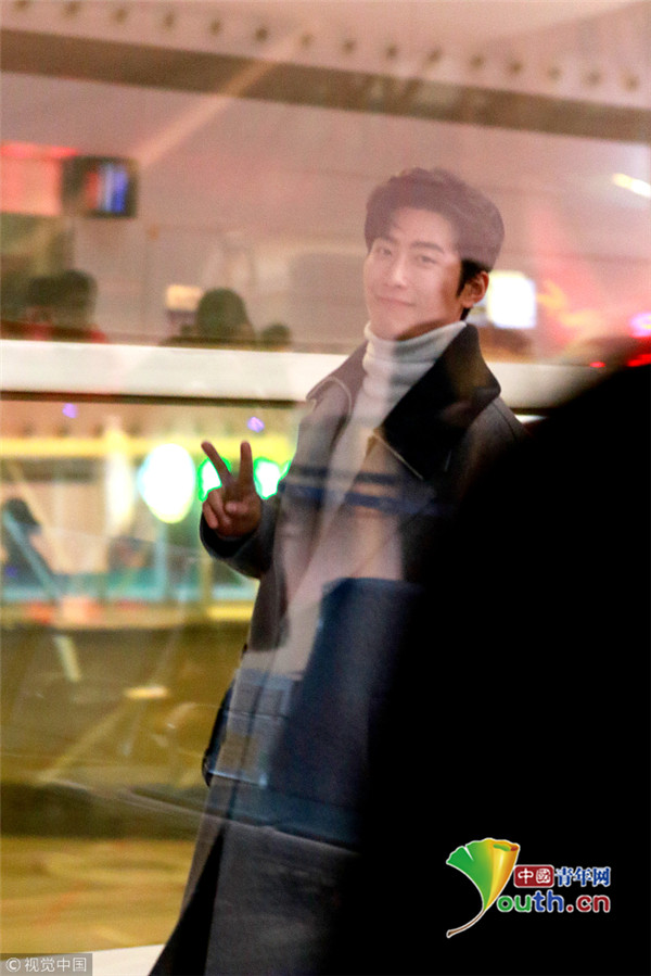 2017年12月11日,無錫,竇驍灰大衣帥氣現(xiàn)身無錫機(jī)場(chǎng),見攝影師拍圖隔著玻璃比V,暖男無疑了!