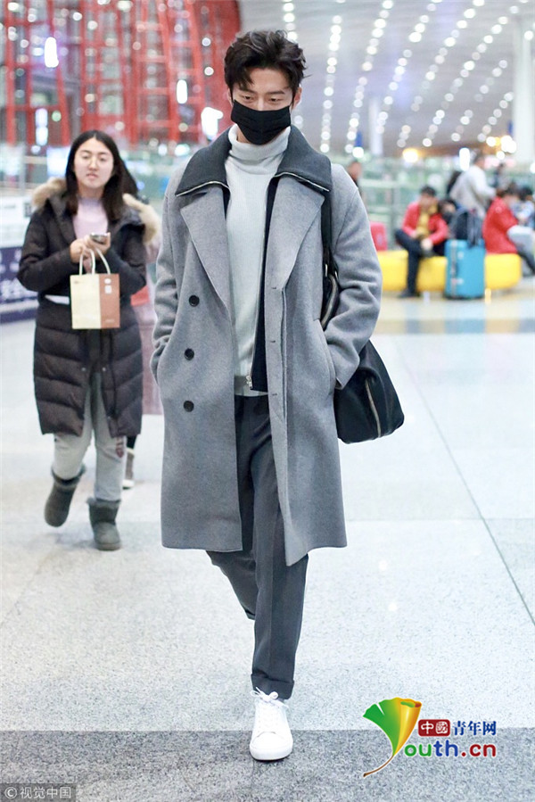 ??2017年12月13日,北京,竇驍身著灰色大衣、戴口罩現(xiàn)身機(jī)場(chǎng),為粉絲大方簽名,見鏡頭開心比V揮手親和力滿分。