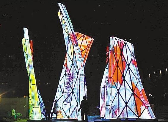 ▲盛姍姍為深圳創(chuàng)作的《綻放》夜景。 深圳商報記者 劉娥 攝
