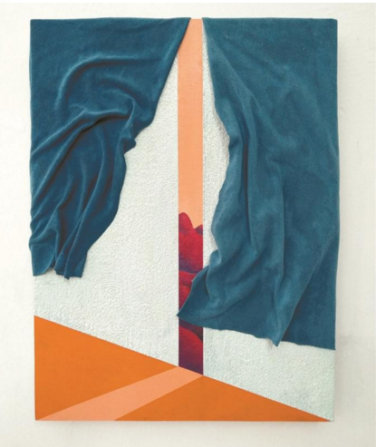 另一方面,青年藝術(shù)家們的創(chuàng)作又明顯與深圳這個(gè)急劇擴(kuò)張的城市都市化景象發(fā)生了疊合。比如林海東的《紅山》,運(yùn)用布面油畫(huà)與真實(shí)的絨布營(yíng)造了一道門(mén)縫外的風(fēng)景,暗紅的土地帶著一束光似乎就是它本身的倒影;江安使用極簡(jiǎn)的方式,彎曲的鐵條、折疊的木板、簡(jiǎn)單的霓虹燈便組成了他的《木門(mén)》;武學(xué)斌將無(wú)數(shù)由遠(yuǎn)及近的立方體組成了他的《城市》,矛盾的空間、散亂的信息以及兩側(cè)高聳的堅(jiān)墻述說(shuō)了置身于城市之中人的壓力。