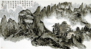 王和平不僅能書寫2尺的大字,還能寫篆書、隸書、行書、草書、楷書,他尤其擅長以指書寫長線條幅,還能書寫小到1寸左右的楷書、行書、草書等各種書體?!皬乃摹饵S山系列》,我看到了一個堅強的古典腳步,追尋在范寬的《谿山行旅途》中,沐李唐的《萬壑松風圖》,聽馬遠的《踏歌圖》……一個精美絕倫的藝術(shù)時代遠逝而去,念天地之悠悠,獨愴然而涕下。留幽幽懷古者,追憶圣賢高士清歌古琴于卷軸中的絕美風騷。王和平和我都是這個幽幽懷古者,追求高貴古典精神的尋賢之人。”這是評論家豐川在他的《心有千像,十指墨弦》一文中評價王和平的指書所述。