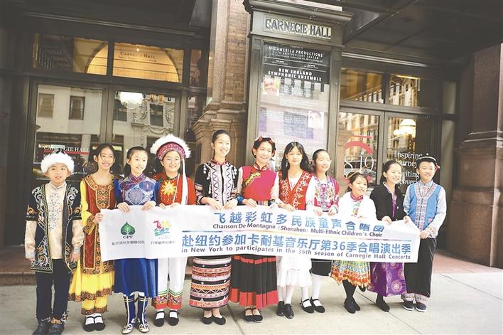深圳飛越彩虹合唱團(tuán)11個小演員身著色彩紛呈的少數(shù)民族服裝放歌卡耐基音樂廳