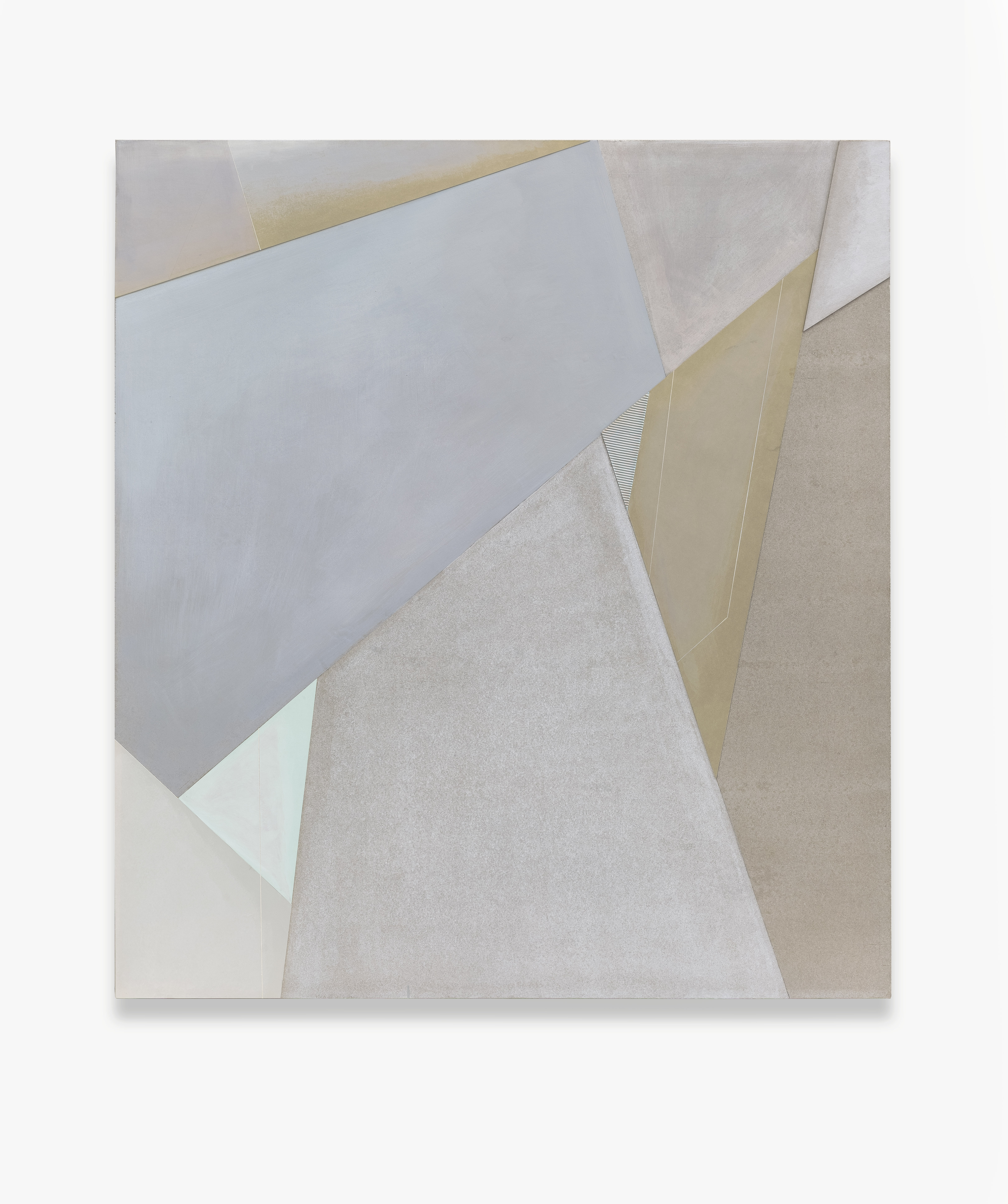 自2013年王豪開始以水泥作為個(gè)人創(chuàng)作媒介以來,三個(gè)系列“寂”、“樸”、“遠(yuǎn)”并行展開?!凹拧焙汀皹恪睆?qiáng)調(diào)水泥作品的靜態(tài)特征,不論是單件作品還是多件組合作品,在水泥材料的細(xì)微變化與色塊搭配上,力求傳達(dá)出一種寧靜、樸拙的整體氣息;“樸”系列在形式上更為豐富,不僅嘗試使用斜線、三角形乃至圓形,還探索富于中國古典韻味的形式表達(dá)(例如對(duì)中國古代手卷的模擬);“遠(yuǎn)”系列的名稱則來源于中國傳統(tǒng)山水繪畫所特有的透視技法“三遠(yuǎn)”概念,這系列作品意圖通過畫面的動(dòng)態(tài)表現(xiàn)打破二維空間限定,拓展平面繪畫的深度與廣度,從美學(xué)意境上與高遠(yuǎn)、深遠(yuǎn)、平遠(yuǎn)相融合。