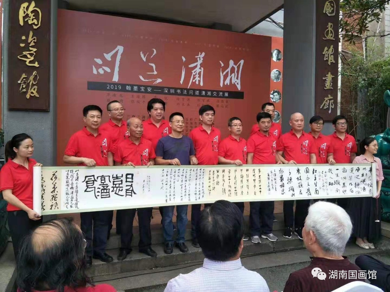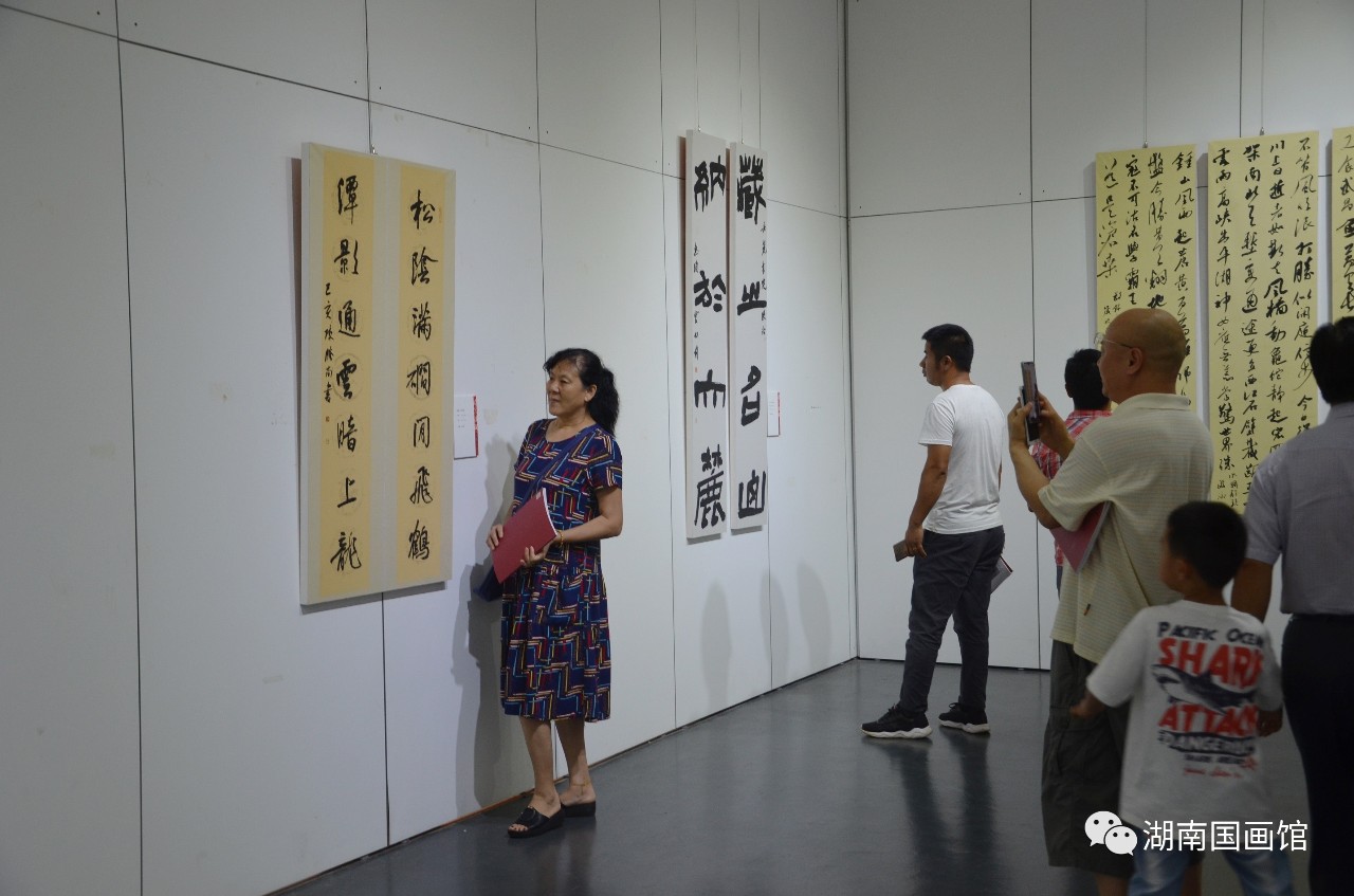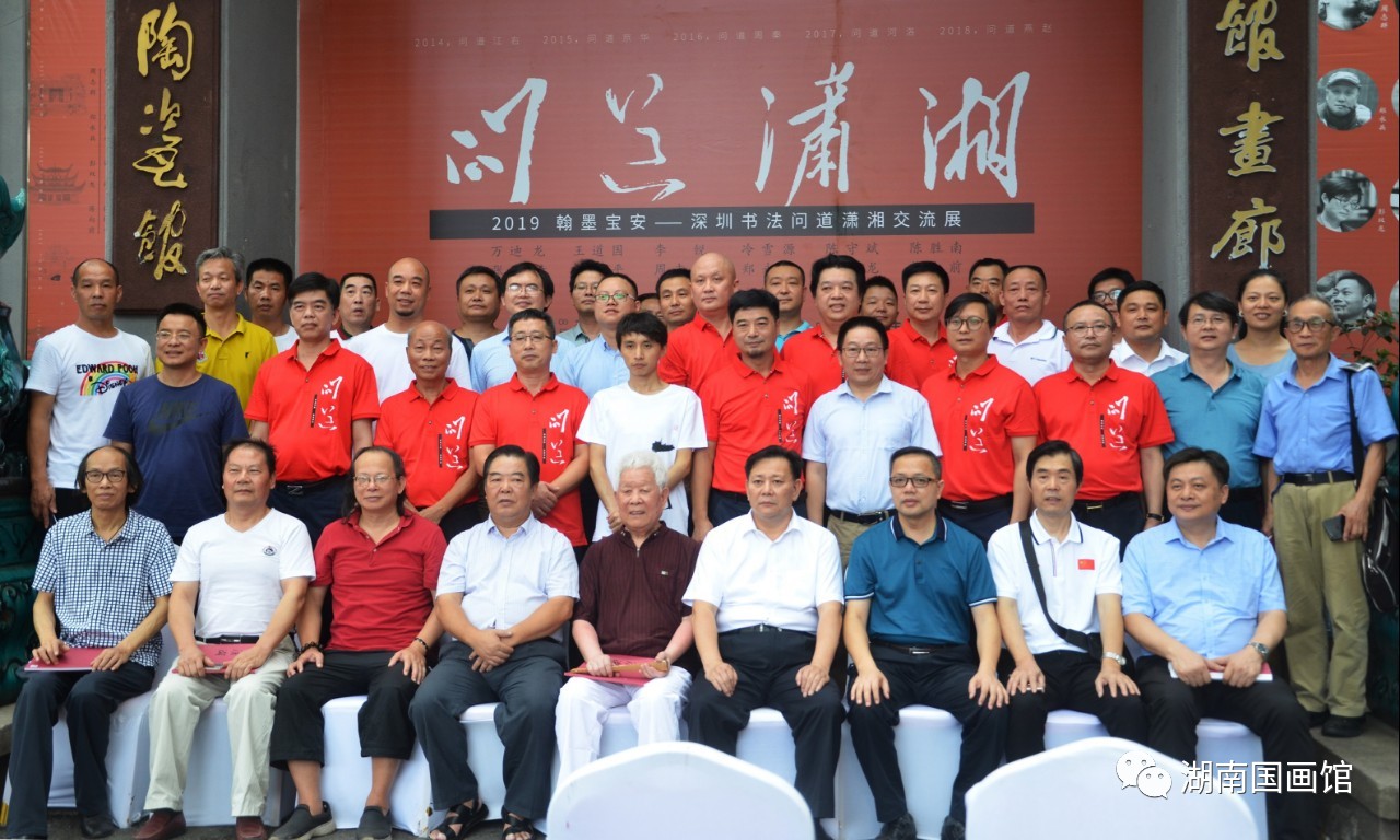 此次“問道瀟湘”是由深圳寶安書社、深圳寶安公共文化服務(wù)中心策劃的品牌活動(dòng),是繼問道江右、問道京華、問道周秦、問道河洛、問道燕趙之后的第六次“問道”活動(dòng),旨在帶上作品,通過展覽和交流,虛心請教,增進(jìn)交流。展覽展出了王道國、萬迪龍、陳勝南、李銳、張琦、張綏平、鄭永兵、冷雪源、周志群、陳守斌、彭雙龍、蔣向前12位深圳書法家的100多幅書法精品,涵蓋篆、隸、楷、行、草、篆刻,氣象正大、功力深厚、風(fēng)格多樣、各有專長,既有切合時(shí)政的政治主題,也有自撰詩詞聯(lián)句和題跋作品;既有湖湘歷史題材佳作,也有深圳本土題材作品;既有丈二巨制,又有平尺小品。展覽的亮點(diǎn)是主展廳的九件丈二巨幅作品,從《不忘初心》到《春天的故事》,從《岳陽樓記》到王冕《墨梅》,筆力沉雄,氣象博大,受到與會(huì)專家和觀眾的好評!