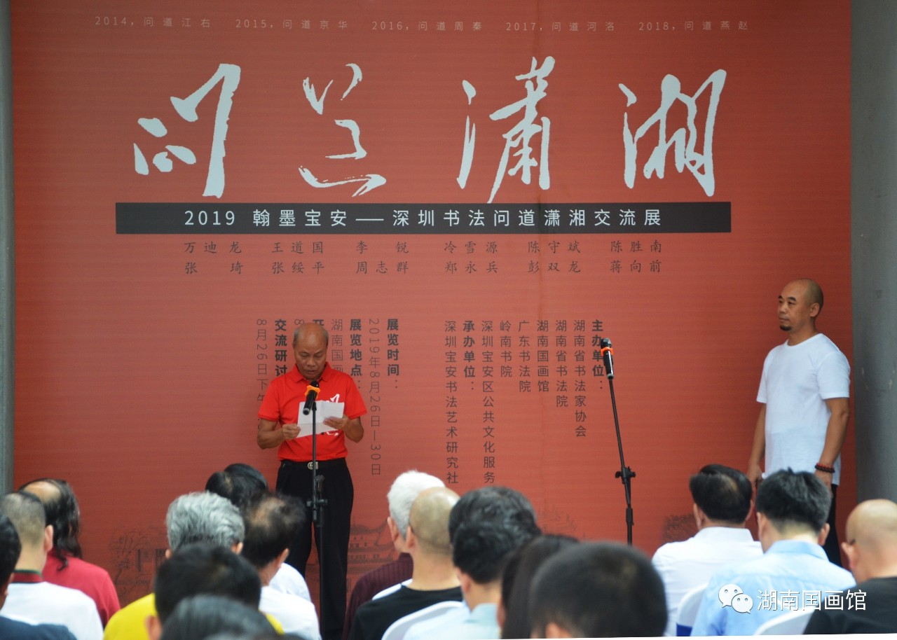 開幕式由湖南省書法家協(xié)會(huì)副主席兼秘書長胡紫桂主持,湖南省文化和旅游廳副廳長、湖南省書協(xié)主席鄢福初,湖南國畫館負(fù)責(zé)人黃作,嶺南書院院長、深圳寶安書社社長張琦分別致辭。