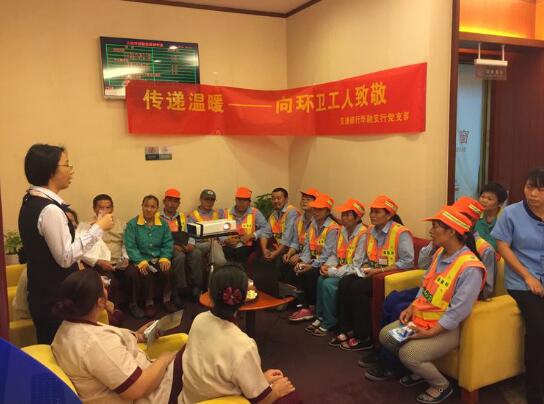 日前,交通銀行深圳華融支行黨支部在深圳華融大廈開(kāi)展了"傳遞溫暖,向環(huán)衛(wèi)工人致敬"活動(dòng)。