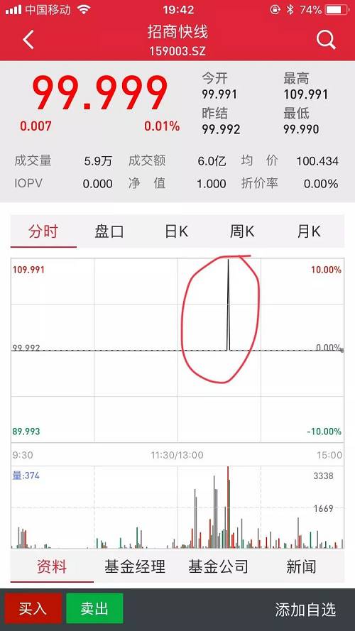 基金君大致講一下這個(gè)過程。2018年3月13日,招商保證金快線A在二級(jí)市場(chǎng)盤中價(jià)格出現(xiàn)了109.991的超高成交價(jià),成交金額5511.95萬(wàn)元,業(yè)內(nèi)人士看來,這大概率是由“烏龍指”所致,不過,這不小心的手一抖,粗略估算就要浮虧約500萬(wàn),一套房就這么沒了。