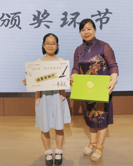 決賽當(dāng)日,在現(xiàn)場的比拼環(huán)節(jié)中,各位選手分組答題,分秒必爭,充分展現(xiàn)了豐富的國學(xué)知識和詩詞底蘊,他們的精彩表現(xiàn)贏得了現(xiàn)場嘉賓、家長們的陣陣掌聲。最終,來自深圳市百合外國語學(xué)校的選手章譯農(nóng),在眾多選手中脫穎而出,以滿分100分的優(yōu)異成績力壓群雄,奪得深圳賽區(qū)特等獎——“深圳太平之星”稱號。章譯農(nóng)選手將在8月代表深圳賽區(qū)赴北京參加全國《群英會》閉幕活動,與權(quán)威語言藝術(shù)大師們一同錄制《共讀一首詩》節(jié)目。