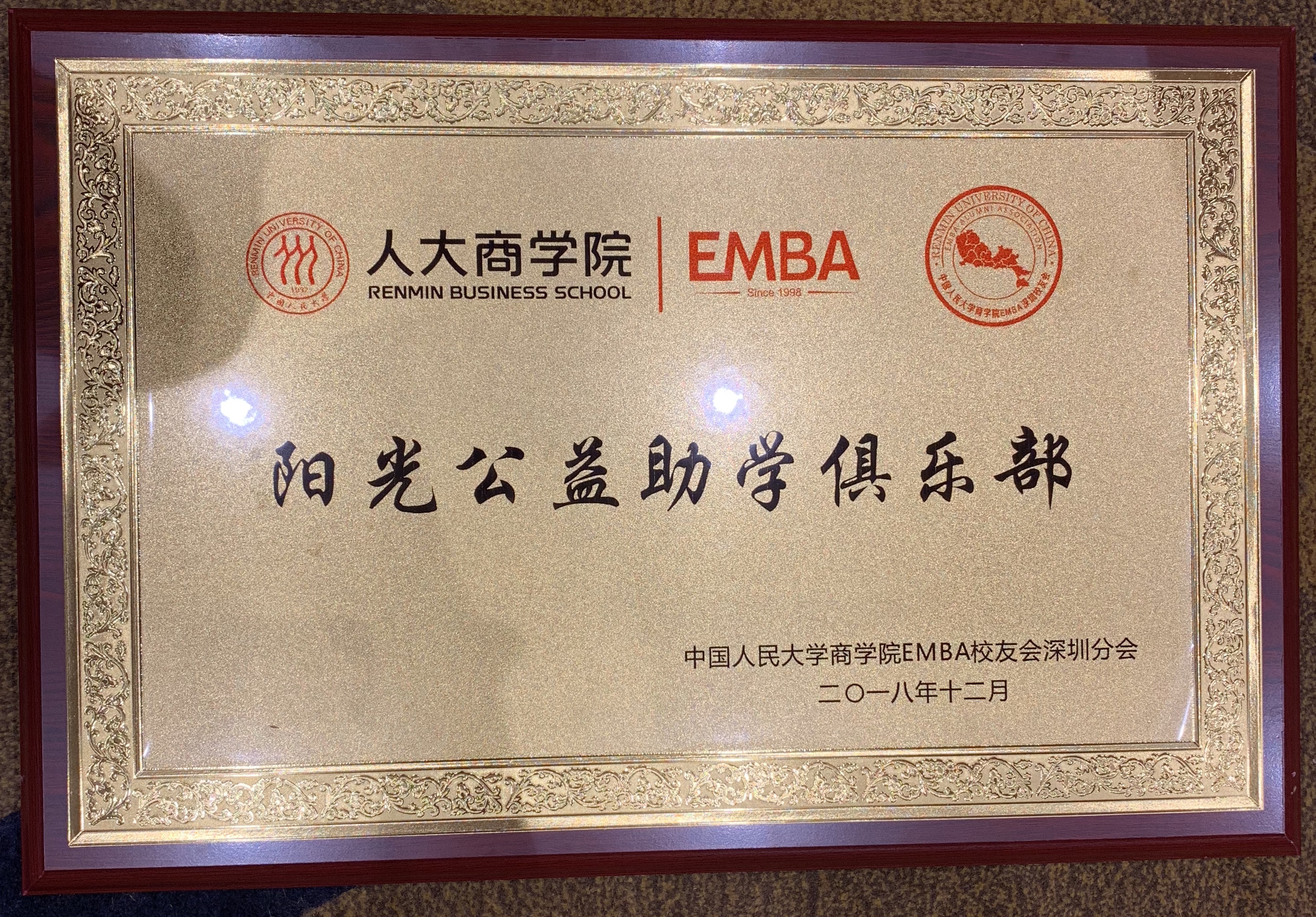 中國人民大學(xué)EMBA“陽光公益助學(xué)俱樂部”授牌成立