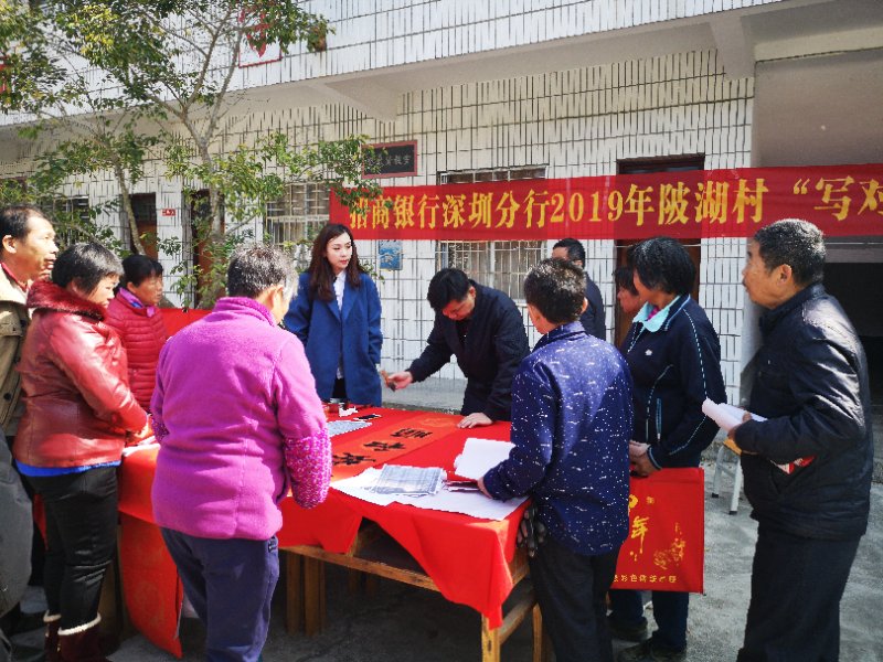 深圳分行組織“陂湖村寫春聯(lián)、送掛歷”活動(dòng)現(xiàn)場(chǎng)