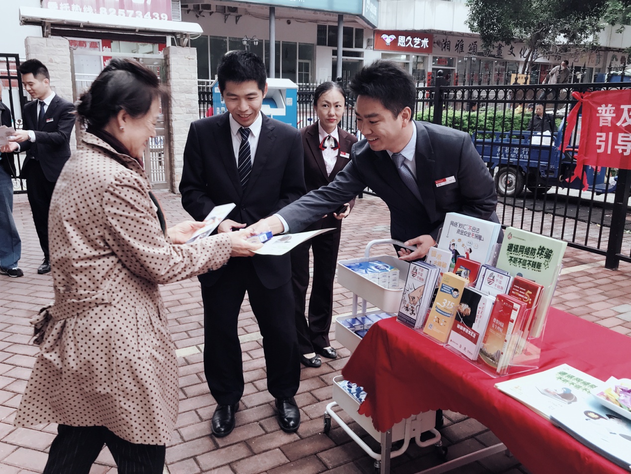 百花支行在百花社區(qū)開(kāi)展了以“以消費(fèi)者為中心優(yōu)化服務(wù)”為主題的活動(dòng),圍繞“普及和提高消費(fèi)者自我保護(hù)意識(shí),引導(dǎo)消費(fèi)者科學(xué)合理文明消費(fèi)”等內(nèi)容,開(kāi)展了一場(chǎng)形式多樣的宣傳活動(dòng)。通過(guò)發(fā)放宣傳折頁(yè)、懸掛橫幅、擺放展板、設(shè)立咨詢臺(tái)等形式,緊緊圍繞金融消費(fèi)者八項(xiàng)權(quán)利、存款保險(xiǎn)常識(shí)、防范電信網(wǎng)絡(luò)詐騙、安全用卡等知識(shí)進(jìn)行講解。