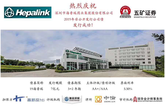 近日,由深圳高新投提供擔(dān)保增信的民營(yíng)企業(yè)私募債券“19海普瑞”成功發(fā)行,票面利率5.5%,創(chuàng)下近期AA+民營(yíng)企業(yè)發(fā)債利率新低。