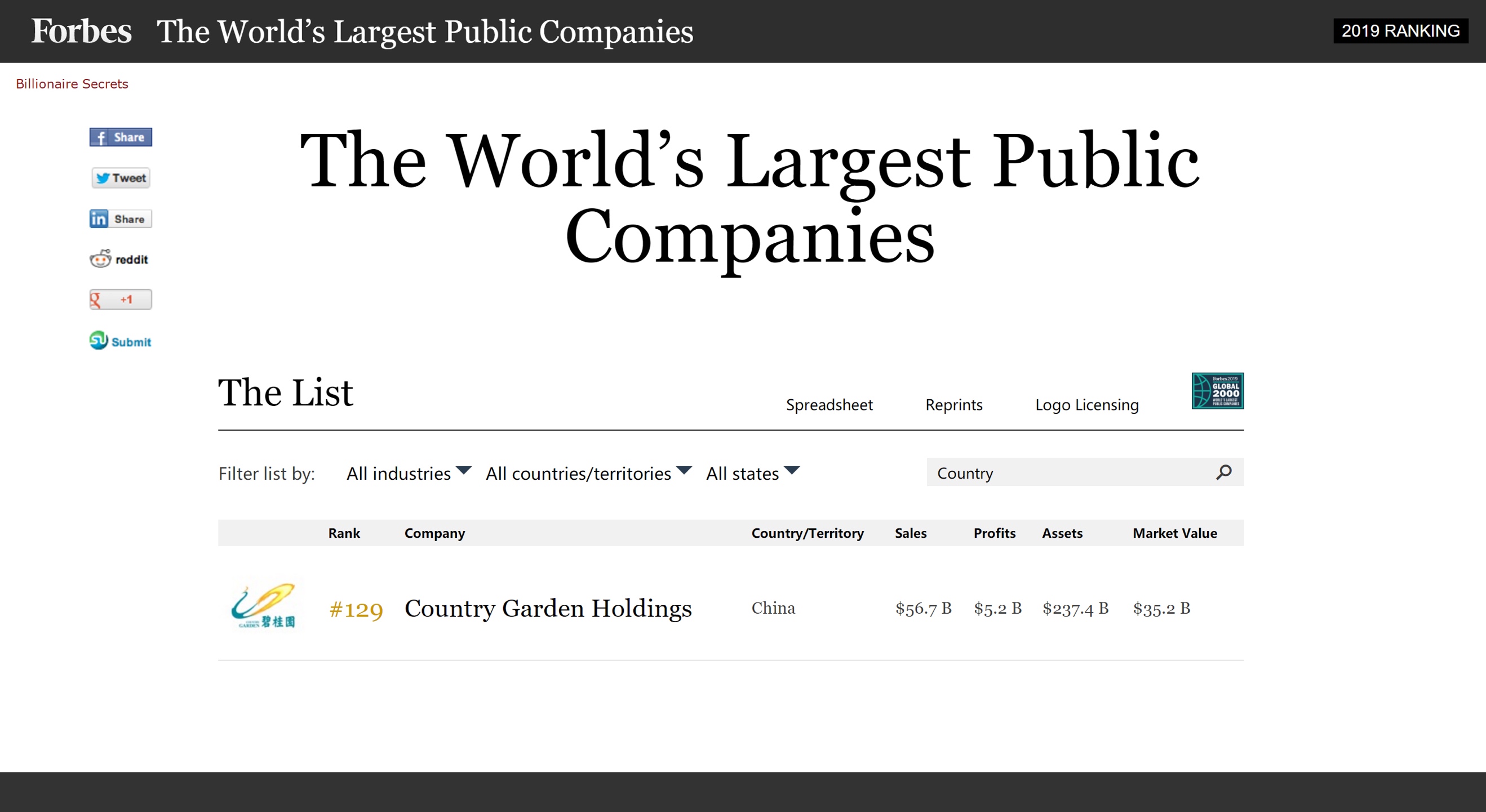 5月16日晚,權(quán)威商業(yè)雜志 《福布斯》發(fā)布了2019年全球上市公司2000強榜單。其中,中國龍頭房企碧桂園(02007.HK)已連續(xù)10年上榜,且排名逐年上升,最新排名升至第129位。