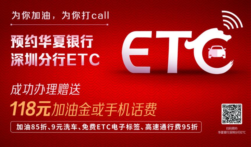 近期,華夏銀行深圳分行推出“為你加油,為你打Call”ETC推廣主題活動(dòng),成功辦理華夏銀行ETC即可獲得118元加油金或手機(jī)通訊費(fèi),更可享受多項(xiàng)優(yōu)惠活動(dòng)。