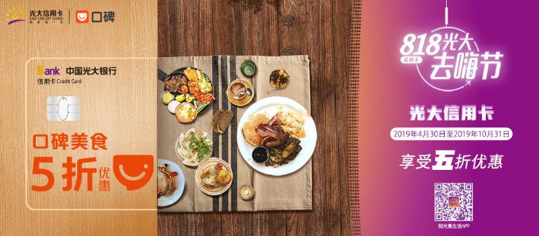 活動(dòng)期間每周一至每周日,光大信用卡用戶且在支付寶實(shí)名認(rèn)證個(gè)人用戶,在口碑平臺(tái)美食行業(yè)商戶處(休閑食品的商戶除外),使用支付寶賬戶綁定的光大銀行信用卡快捷支付進(jìn)行當(dāng)面付消費(fèi),有機(jī)會(huì)享受5折優(yōu)惠,最高15元優(yōu)惠封頂?;顒?dòng)期間每天限前8000個(gè)優(yōu)惠名額,名額有限,用完即止?;顒?dòng)期間同一用戶每月限享1次優(yōu)惠機(jī)會(huì)。(詳見陽(yáng)光惠生活A(yù)PP或口碑APP銀行卡特惠頻道,具體路徑見活動(dòng)細(xì)則)。