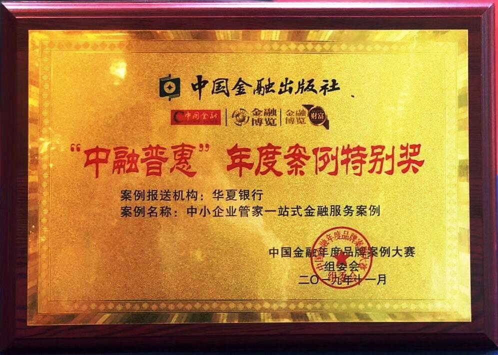 賽事由中國金融出版社有限公司主辦,《中國金融》《金融博覽》《金融博覽·財富》雜志承辦,旨在推廣中國金融業(yè)中具有典型特點和借鑒意義的品牌文化建設(shè)案例,搭建各金融機構(gòu)品牌文化建設(shè)工作溝通和交流的平臺,提升各機構(gòu)對品牌文化建設(shè)的理解和認識,推動我國金融文化的發(fā)展。華夏銀行因在普惠金融領(lǐng)域的創(chuàng)新發(fā)展脫穎而出,獲得“中融普惠”年度案例特別獎。