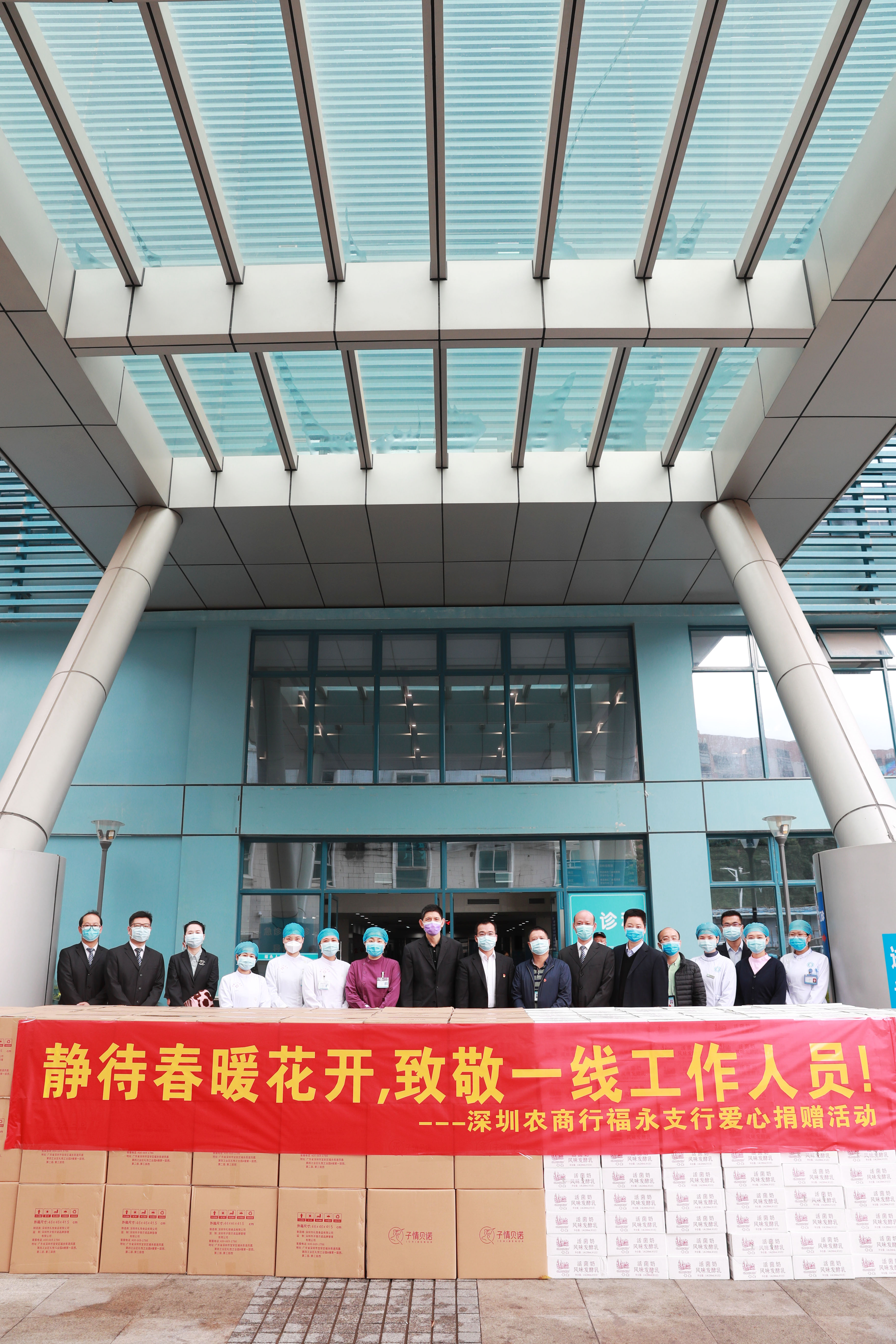 福永人民醫(yī)院堅守在福永街道抗疫前線,守護著福永和福海近百萬人的健康,為感謝福永人民醫(yī)院醫(yī)務(wù)人員加班加點忘我奮戰(zhàn),深圳農(nóng)商行福永支行選購了1500盒糕點和1500箱酸奶送到福永人民醫(yī)院,表達他們對醫(yī)務(wù)工作者“舍小家、為大家”的崇高敬意。