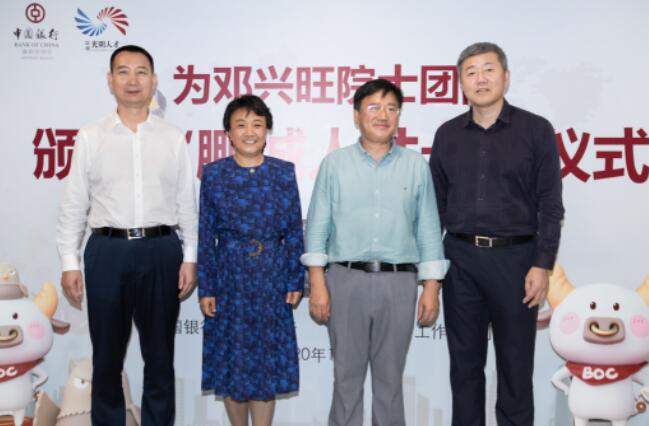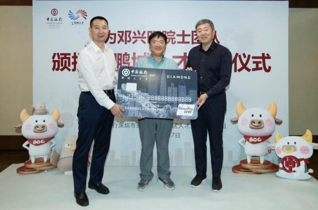 深圳新聞網(wǎng)·見圳客戶端2020年11月8日訊 昨日,深圳市光明區(qū)委常委、組織部部長繩萬青,中國銀行深圳市分行副行長韓竹代表深圳市光明區(qū)人才辦和中國銀行深圳市分行,為生物學家、美國國家科學院院士鄧興旺及部分團隊成員頒發(fā)了“中銀鵬城人才卡”鉆石卡,這是全市范圍內(nèi)首張向在深院士發(fā)放的“中銀鵬城人才卡”,標志著這張由光明區(qū)人才辦和深圳中行共同策劃推出的人才卡實現(xiàn)了市級認定的各層級人才全覆蓋。鄧興旺院士是深圳市杰出人才獲得者、深圳市作物分子設計育種研究院院長、深圳興旺生物種業(yè)有限公司董事長,他帶領團隊2010年到深圳創(chuàng)業(yè),多年來在水稻領域取得兩項重大技術突破,其中“潔田模式”大規(guī)模市場示范面積達到50萬畝,有效加快了中國農(nóng)業(yè)的輕簡化、現(xiàn)代化步伐。