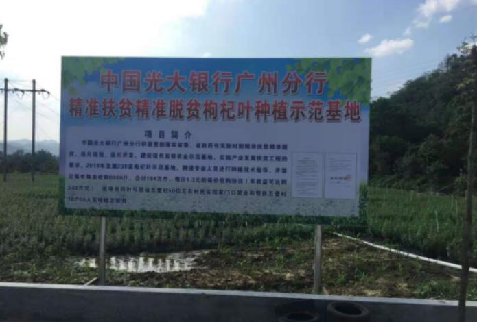 其中,廣州分行投入14萬元支持廣東省陽山縣五愛村發(fā)展250畝枸杞葉種植產業(yè),該項目在第二年起,每年可帶來經濟效益約200萬元,同時可帶動五愛村約50位村民實現家門口就業(yè)和幫扶五愛村貧困戶18戶55人實現穩(wěn)定脫貧。