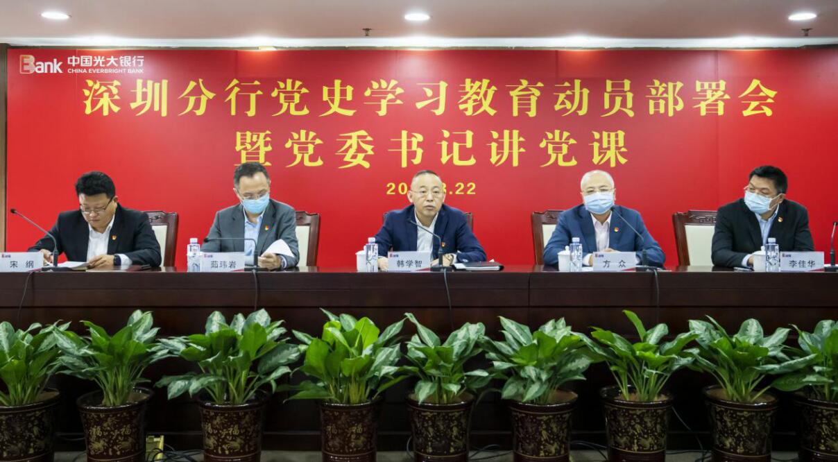 會上,韓學智對分行開展黨史學習教育作了動員部署。他指出,在建黨100周年之際,黨中央組織開展黨史學習教育意義重大、正當其時。他對分行全體員工提出六點要求:一是通過學習進一步傳承紅色基因,堅定道路自信、理論自信、制度自信、文化自信,真正做到學史明理、學史增信、學史崇德、學史力行。二是各黨支部要按照統(tǒng)一部署,迅速行動,扎實開展黨史學習教育,尤其是黨員領導干部在學黨史、講黨史、懂黨史、用黨史方面要發(fā)揮示范帶動作用。三是采取特色鮮明、形式多樣的學習教育方式,提高學習效果。四是通過學習增強為民服務意識,貫徹好新發(fā)展理念,助力破解經(jīng)營發(fā)展難題,著力服務實體經(jīng)濟,服務民生。五是通過學習落實從嚴治黨要求,通過以案促改、從嚴治行,實現(xiàn)強思想、強組織、強隊伍、強作風、強紀律。六是通過學習增強擔當精神,把學習成效轉(zhuǎn)化為工作動力和工作成效,為深圳分行開新局做出積極貢獻,以實績慶祝建黨100周年。
