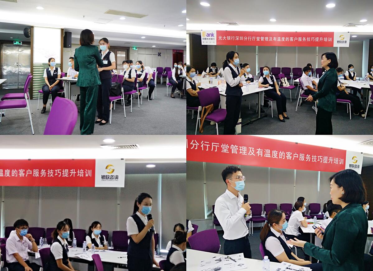 深圳新聞網·見圳客戶端2021年5月27日訊 今日,光大銀行深圳分行成功舉辦“廳堂管理及有溫度的客戶服務技巧提升”第一期專題培訓,各支行大堂經理及大堂助理共50余人參加培訓。培訓強化了員工對大堂崗位的認識和理解,進一步提升了廳堂人員服務工作意識與質量,是深圳分行陽光服務工作邁入新階段的一個里程碑。
