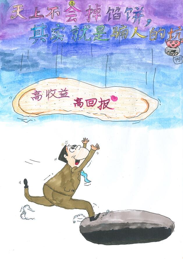 據(jù)了解,本次活動(dòng)以“防范電信網(wǎng)絡(luò)詐騙”“防范非法集資”“珍視個(gè)人信用”“打擊洗錢”等貼近日常生活的金融知識(shí)為題材,華夏銀行深圳分行組織員工子女們開動(dòng)腦筋、發(fā)揮自身的聰明才智和想象力,通過漫畫、水彩畫、蠟筆畫等多種繪畫形式,將晦澀難懂的金融知識(shí)變得生動(dòng)形象、通俗易懂。