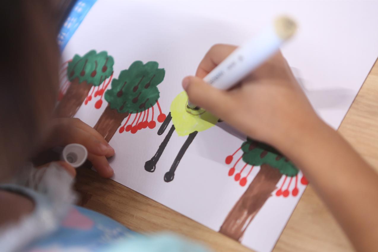 在繪畫沙龍課堂上,老師通過色彩搭配、人物構(gòu)圖、創(chuàng)意理念等多個維度,向小朋友們分享了繪畫過程中的技巧以及需要關(guān)注的重點(diǎn)。她還格外強(qiáng)調(diào)了創(chuàng)意及想法在繪畫過程中的重要性,特別提醒各位家長不要過多去干預(yù)孩子的創(chuàng)作,盡可能讓孩子多去自己思考、自己創(chuàng)作。