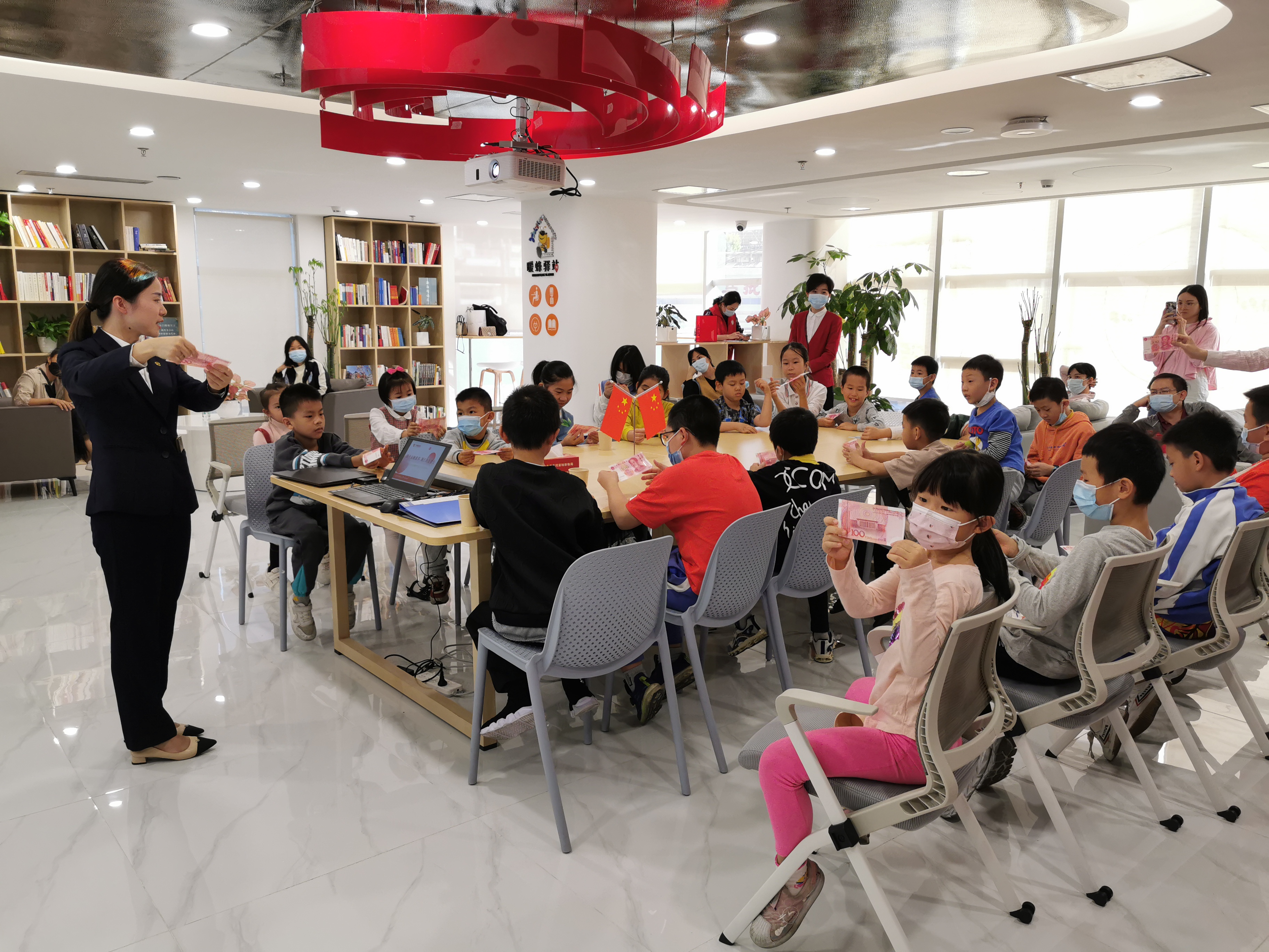 在此次活動中,華夏銀行深圳東門支行的金融安全守護者向小朋友們宣講防范電信詐騙、反假幣等金融基礎知識,播放由華夏銀行原創(chuàng)的金融知識短視頻《青少年反詐騙,這一課不可少》,通過主題宣講和游戲互動等方式讓小朋友們“學金融、懂金融、用金融、受益于金融”?;顒蝇F(xiàn)場,小朋友們積極參與游戲互動,在“寓教于樂”中對常見的金融陷阱有了初步了解,并對學習掌握金融知識產(chǎn)生濃厚興趣,紛紛爭當金融小衛(wèi)士。