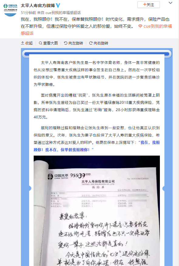 在微博的網(wǎng)絡互動里,太平人壽積極發(fā)動內(nèi)外勤及客戶,講述了幸福的生活趣事。