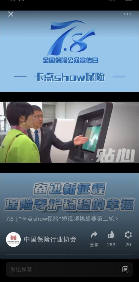 豐富多樣的線下活動,僅是太平人壽開展“7·8保險宣傳日”系列活動的一個側(cè)面。而另一個側(cè)面,太平人壽充分利用微博、抖音、視頻號等互聯(lián)網(wǎng)平臺,積極貫徹落實中國保險業(yè)協(xié)會組織開展的“卡點show保險”短視頻話題挑戰(zhàn)活動及“cue到我的幸福感@第10個7.8全國保險公眾宣傳日”網(wǎng)絡話題活動。
