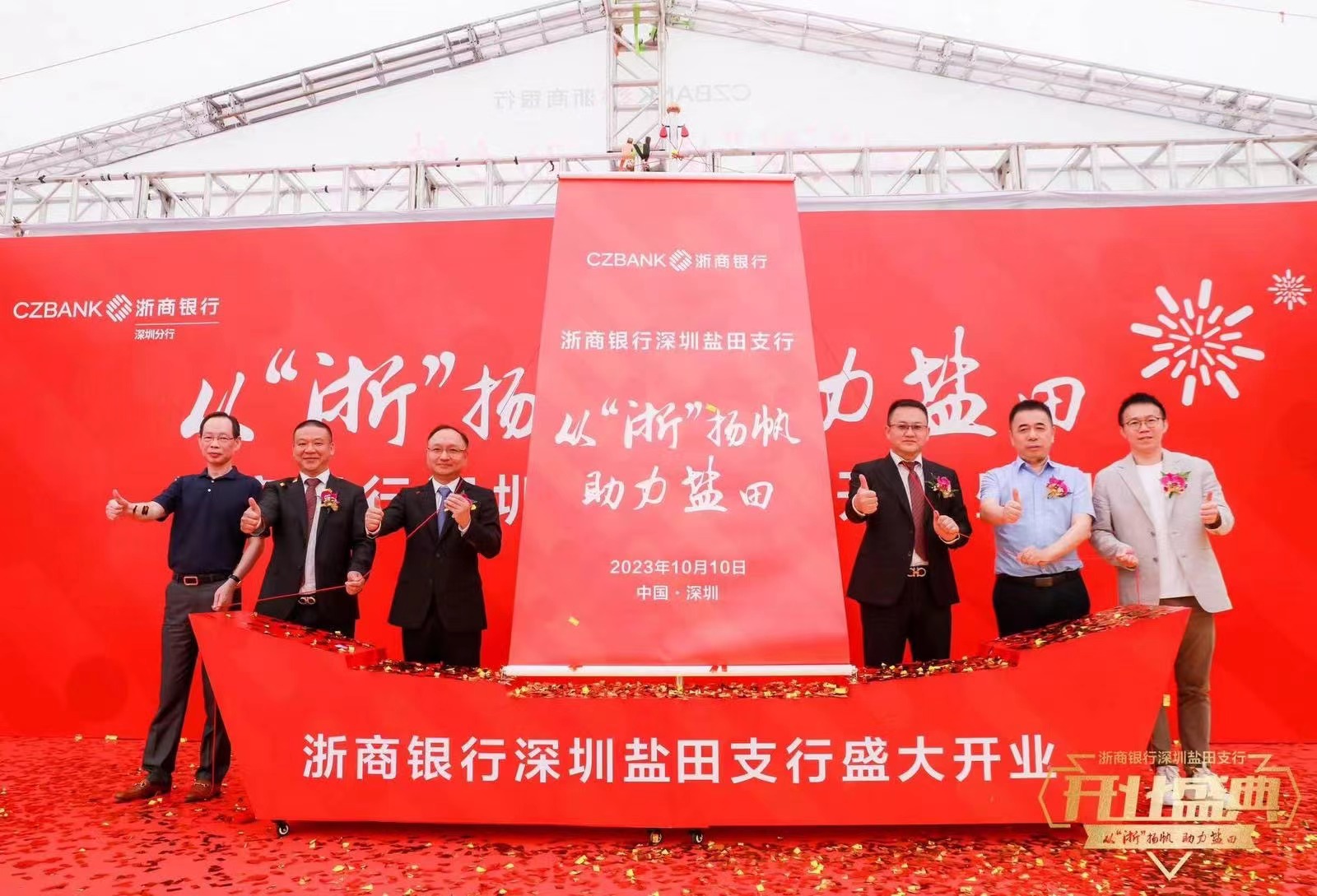 深圳新聞網(wǎng)2023年10月10日訊(記者 朱琳 通訊員 劉璇)10月10日,浙商銀行深圳鹽田支行舉辦了“從浙揚(yáng)帆,助力鹽田”開(kāi)業(yè)慶典。鹽田區(qū)人民政府副區(qū)長(zhǎng)周建軍,鹽田區(qū)工業(yè)和信息化局局長(zhǎng)汪大鵬,浙商銀行深圳分行黨委書(shū)記、行長(zhǎng)樓瞿華,浙商銀行深圳分行黨委委員、紀(jì)委書(shū)記、風(fēng)險(xiǎn)監(jiān)控官郭維奇,華南城控股集團(tuán)執(zhí)行董事覃文忠,浙商銀行深圳鹽田支行行長(zhǎng)葉藝華以及鹽田發(fā)展改革局、鹽田區(qū)科技創(chuàng)新局、鹽田區(qū)財(cái)政局等機(jī)構(gòu)負(fù)責(zé)人、企業(yè)商會(huì)代表60余人出席。