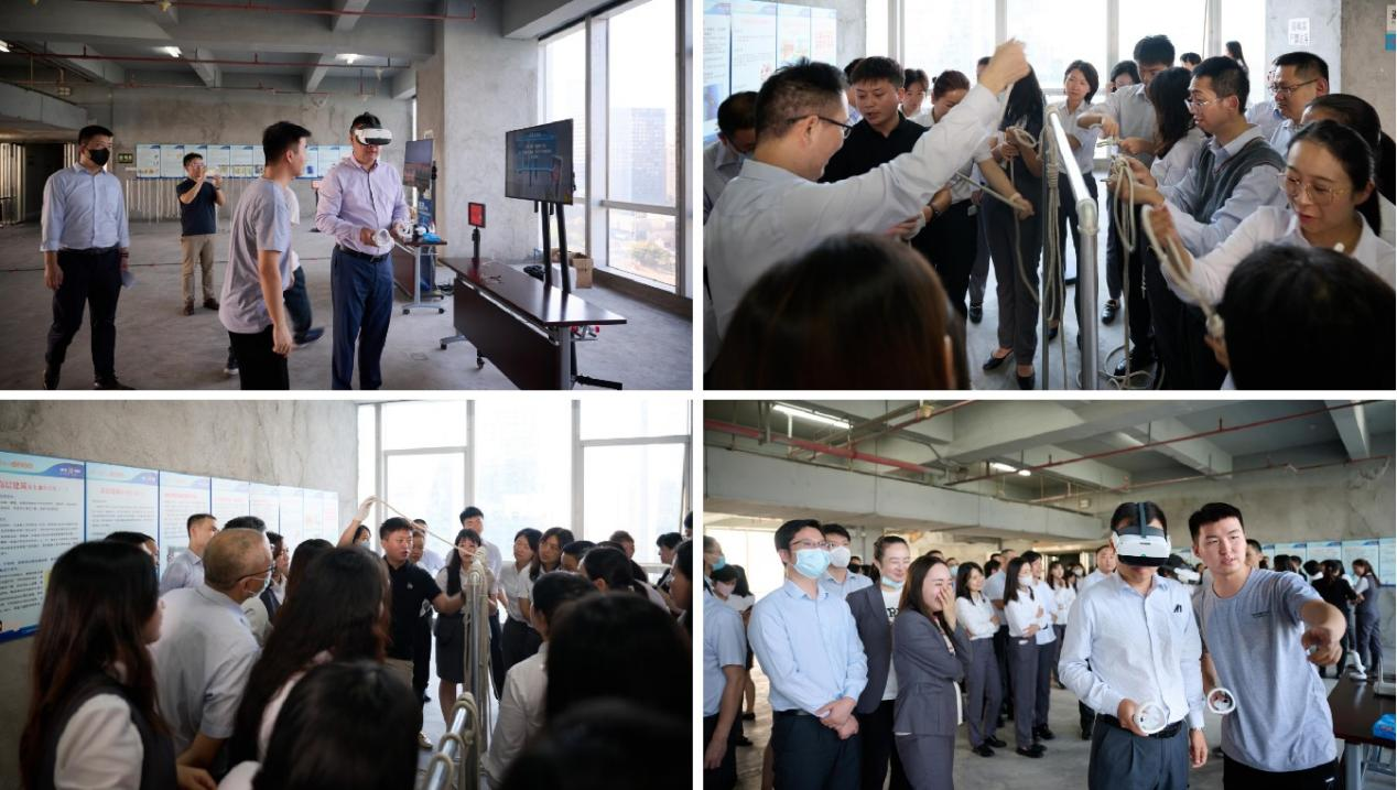 在完成避難集結(jié)后,廣發(fā)銀行深圳分行組織現(xiàn)場員工開展消防知識培訓。培訓主要采用理論知識與實踐操作相結(jié)合的模式,將活動現(xiàn)場劃分為VR虛擬安全場景、消防逃生繩結(jié)、消防安全逃生屋、滅火器材及防毒面具等體驗區(qū),每個區(qū)域均安排了專業(yè)講師講解相關知識,并協(xié)助員工操作和使用相關器材設備。員工們通過親身參與,學習了消防器材使用方法和高層火災逃生技能。