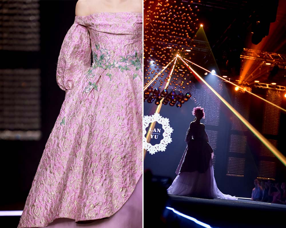 值得一提的是,LANYU品牌帶來了歷屆發(fā)布經(jīng)典系列中的代表作品,展出設計融合了蘇繡藝術的經(jīng)典手工技藝特色及現(xiàn)代時裝設計的新鮮潮流之美,綻放出了美輪美奐的視覺藝術效果,國風文化與國際時尚撞了個滿懷,讓現(xiàn)場觀眾贊嘆不已。
