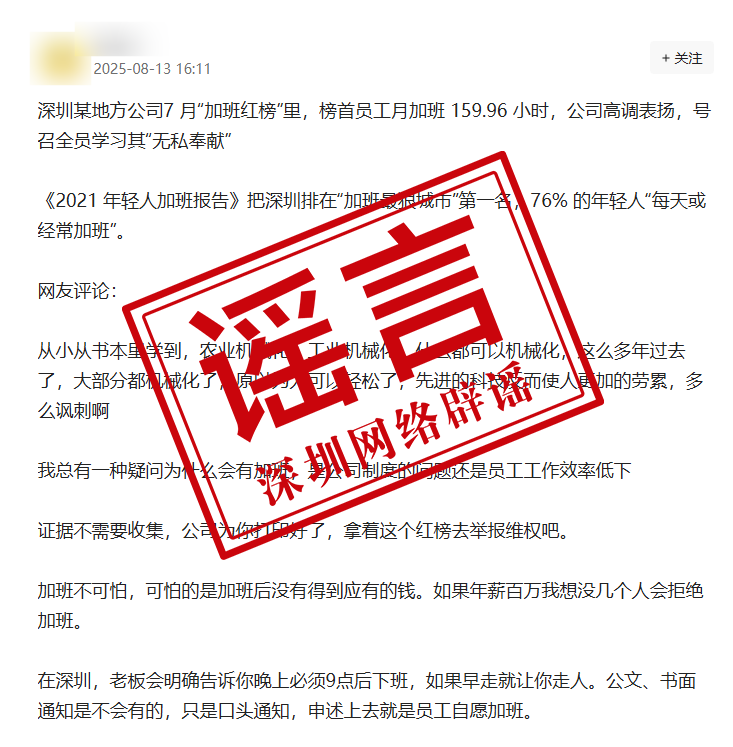 網(wǎng)傳深圳某公司發(fā)布加班紅榜?涉事企業(yè)非深圳企業(yè)