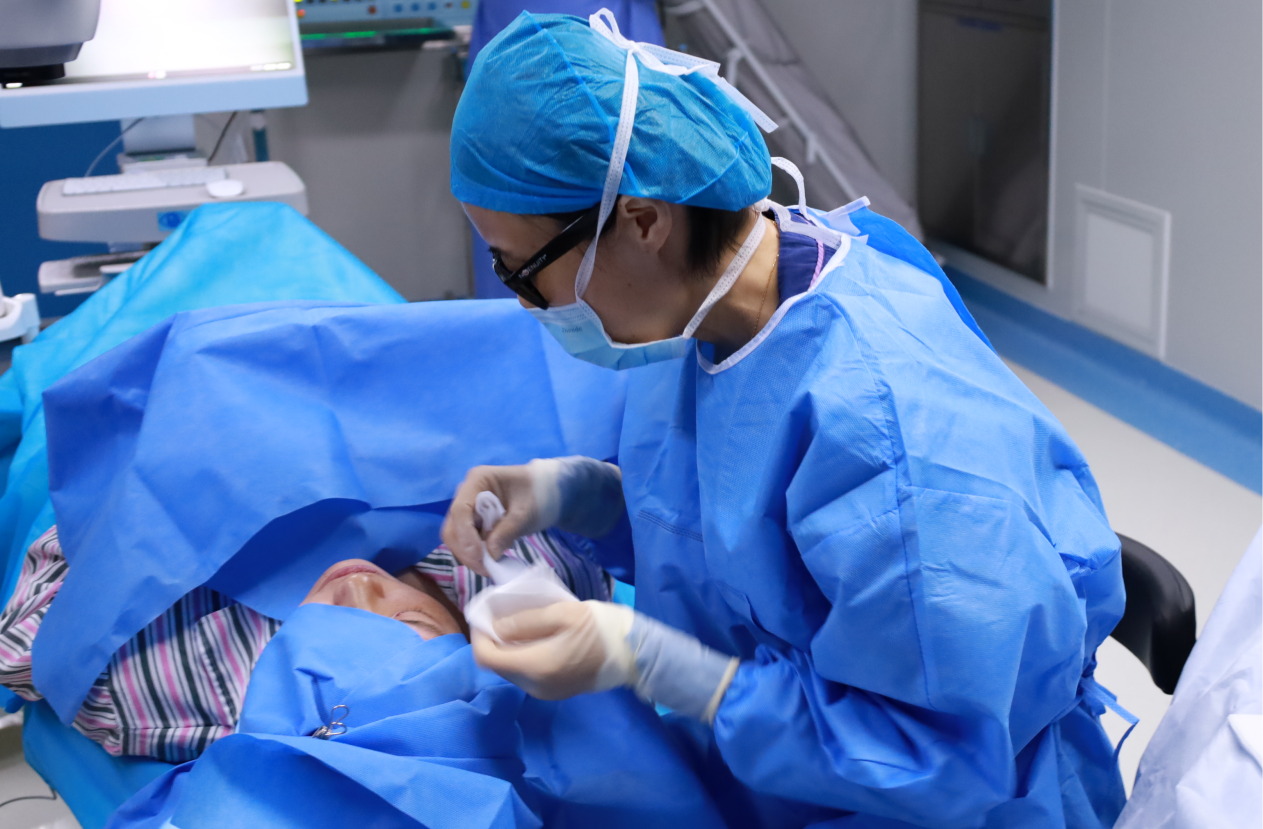 手術(shù)當(dāng)天,齊衛(wèi)主任憑借二十余年的臨床經(jīng)驗(yàn),在 3D 顯微鏡的輔助下穩(wěn)步操作。與傳統(tǒng)手術(shù)不同,3D 顯微鏡讓晶體植入的每一個環(huán)節(jié)都直觀可見,晶體的邊緣貼合度、居中位置都能實(shí)時把控。整個手術(shù)耗時不長,創(chuàng)傷小,朱小姐全程沒有明顯不適感。