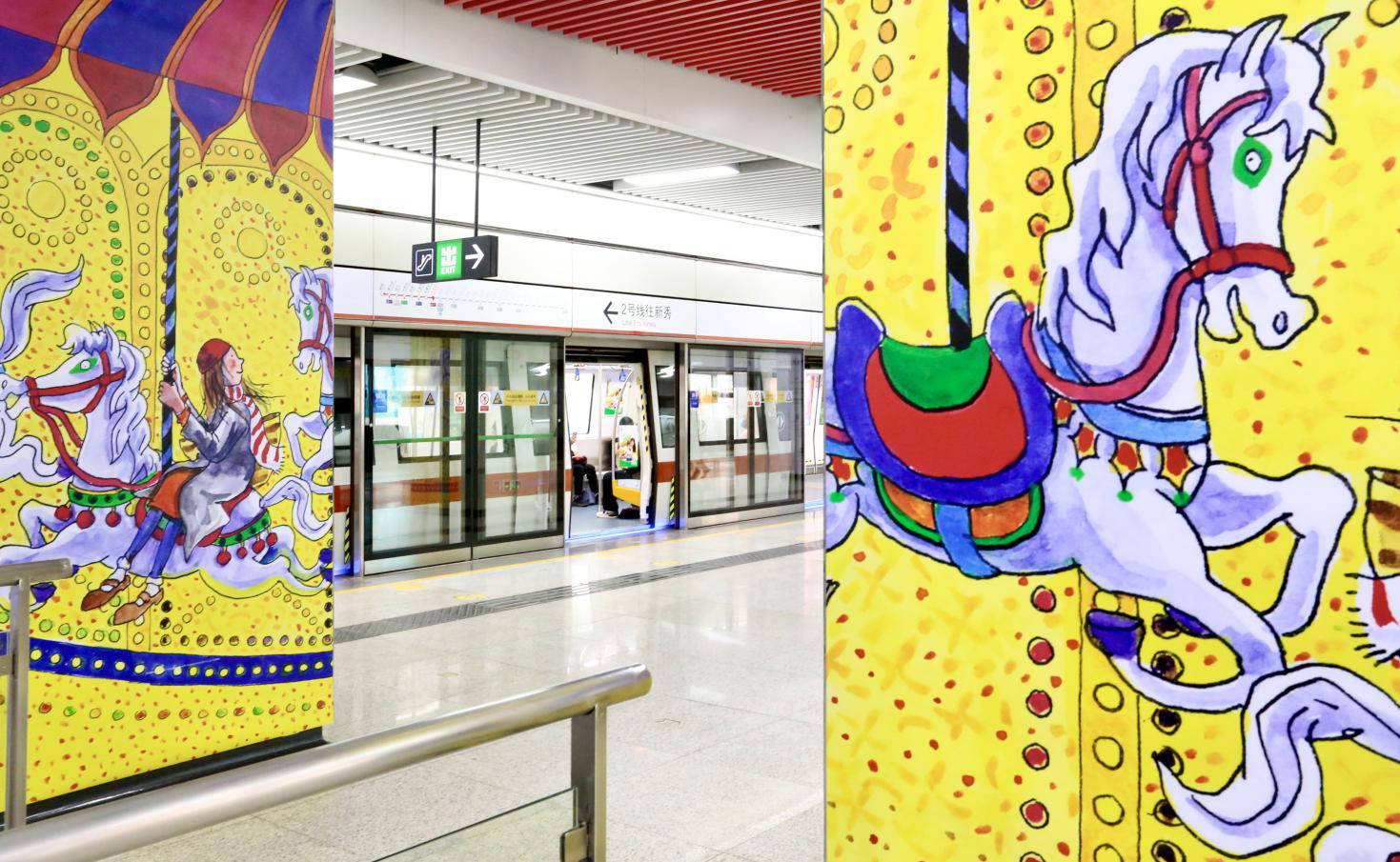 同時,幾米的經(jīng)典作品也走進現(xiàn)實,與大家相遇。深圳地鐵1號線更開通一列幾米藝術列車,世界之窗站、大劇院站、市民中心站也變身幾米藝術站點。