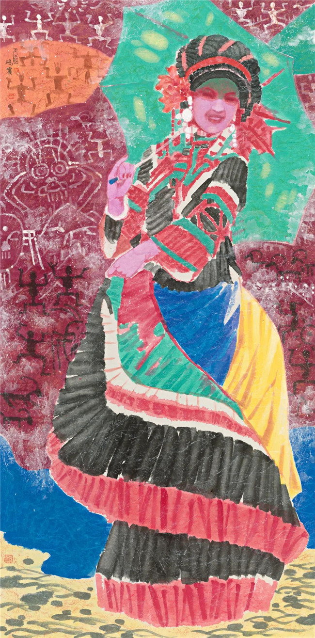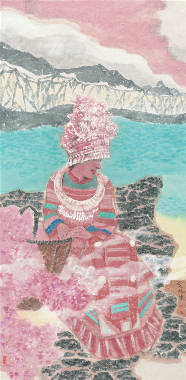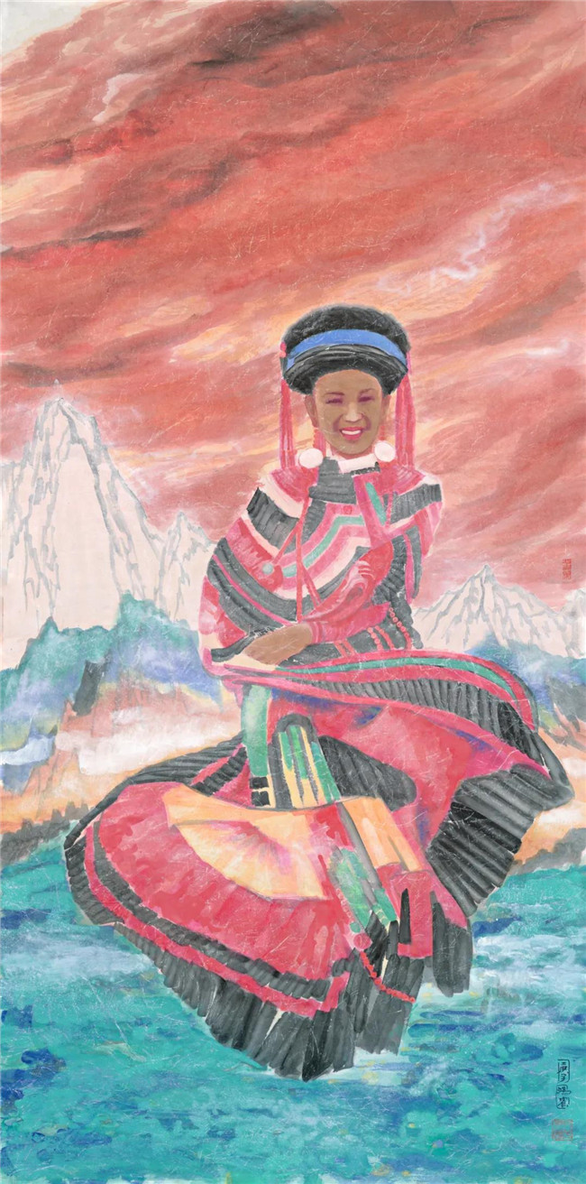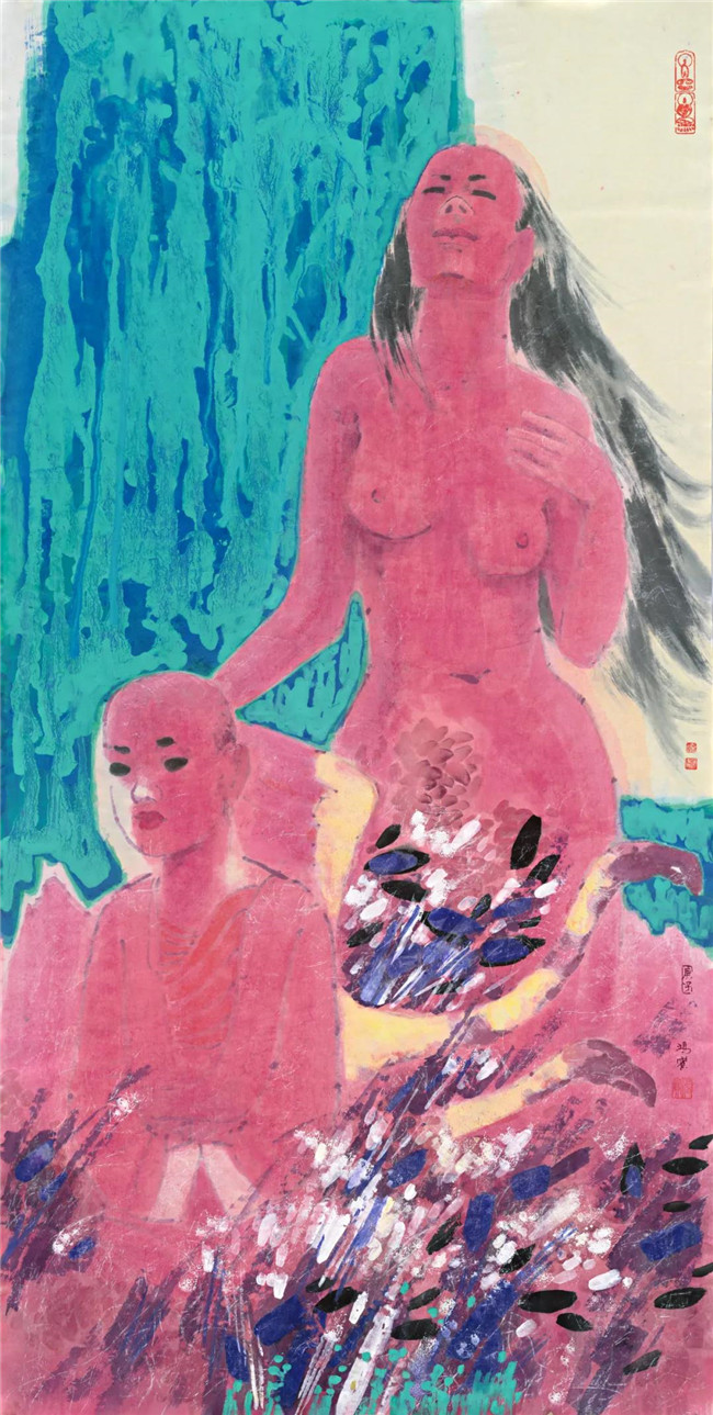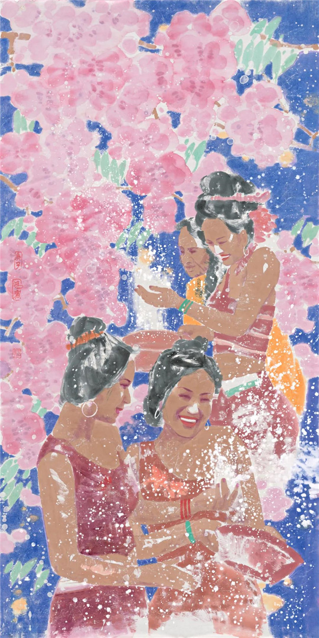 又見(jiàn)山花開(kāi) 彩墨 136X68cm 2019年