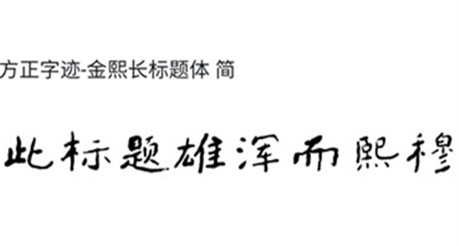 金熙長(zhǎng)先生創(chuàng)作的《方正字跡-金熙長(zhǎng)標(biāo)題體》,以嚴(yán)謹(jǐn)?shù)膶W(xué)術(shù)態(tài)度,經(jīng)過(guò)近四十年來(lái)一直不斷的歷代名碑名帖的錘煉化虛,終將難字拆開(kāi)成“又佳”,形成自已目前“雄渾靜穆與高古野逸為一爐的居士書(shū)風(fēng)面貌”。面對(duì)《方正字跡-金熙長(zhǎng)標(biāo)題體》,讀者只要將目光稍作停留,就不難發(fā)現(xiàn)該字體有以下特色——