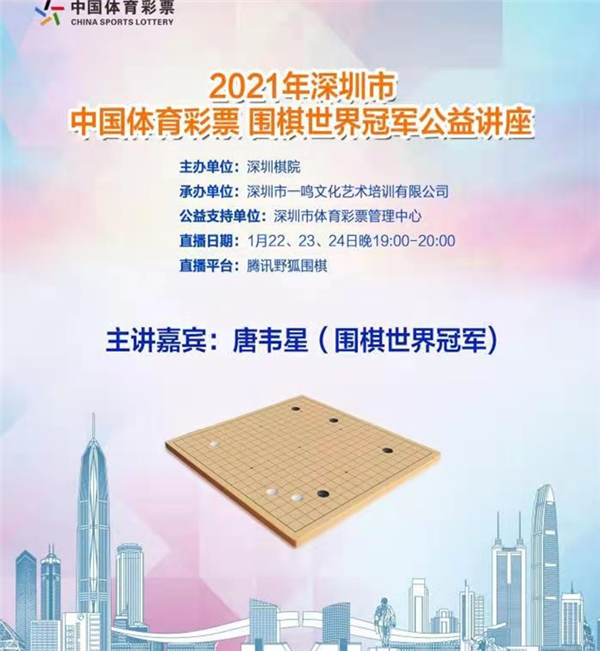 見圳客戶端?深圳新聞網(wǎng)訊(記者周錦春)2021年1月22、23、24日連續(xù)三天晚上,由深圳棋院主辦,深圳市一鳴文化藝術(shù)培訓(xùn)有限公司承辦,深圳市體育彩票管理中心支持的“2021年深圳市中國體育彩票圍棋世界冠軍公益講座”在騰訊野狐圍棋平臺(tái)線上舉行。
