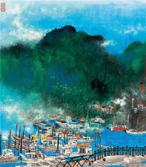 來(lái)自南京而定居于深圳的宋玉明,試圖將新金陵畫(huà)派表現(xiàn)現(xiàn)實(shí)的變革精神用于現(xiàn)代城市山水畫(huà)的探索上。作為新金陵畫(huà)派的第二代畫(huà)家,宋玉明直接承傳了宋文治表現(xiàn)現(xiàn)代太湖人居環(huán)境秀潤(rùn)而精巧的家法,并將此種大山景加小民居的畫(huà)法轉(zhuǎn)用到深圳城市形態(tài)的表現(xiàn)上。這里,我們一方面可以看到深圳作為一個(gè)新興的現(xiàn)代城市借山而筑、注重自然環(huán)境在城市生態(tài)建設(shè)上的積極作用;另一方面,深圳這種與自然相統(tǒng)一的現(xiàn)代化城市建設(shè)理念,也為宋玉明進(jìn)行城市山水畫(huà)創(chuàng)作提供了完美的表現(xiàn)對(duì)象。在《深圳文錦渡》等作品里,我們看到了畫(huà)家巧妙地將城市現(xiàn)代建筑與自然山水融為一體的表現(xiàn)。這些畫(huà)作,大多以勾線渲染的方法表現(xiàn)遠(yuǎn)景中的商用或市政建筑設(shè)施,也因這些建筑被設(shè)置在中遠(yuǎn)景,不僅減少了建筑塑造的困窘,而且突出了這些人居建筑與自然相得益彰的和諧關(guān)系。這些畫(huà)作,從嚴(yán)格的意義上說(shuō),仍然是山水畫(huà),而宋式小散鋒皴以及云煙雨霧的渲染,也為畫(huà)面增添了幽深、恬靜、高雅、平和的意趣與境界。這些畫(huà)作,讓我們所熟悉的城市從一個(gè)相對(duì)遙遠(yuǎn)的視角來(lái)觀看,既因距離產(chǎn)生了一種從未體驗(yàn)過(guò)的美感,也較好地體現(xiàn)了現(xiàn)代城市與自然占位的協(xié)調(diào)統(tǒng)一、舒適宜居的比例關(guān)系。