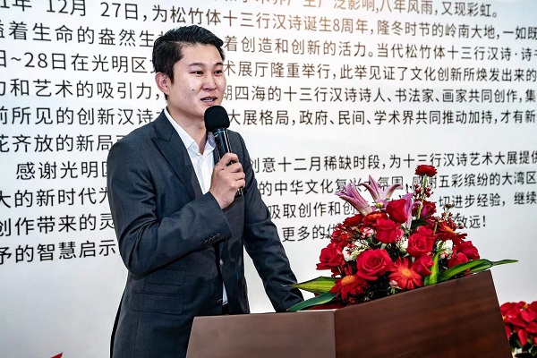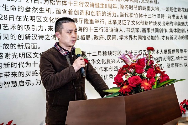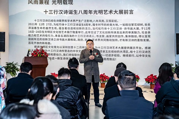 讀特客戶端·深圳新聞網(wǎng)2021年12月29日訊(記者 田志強)近日,國家社科基金項目“當(dāng)代漢詩創(chuàng)新詩體研究”階段性成果展——十三行漢詩書畫作品展,于光明區(qū)文化館成功舉辦。本次展覽集中展示本項目重要研究成果、全國各地新漢詩詩人的原創(chuàng)十三行漢詩之書畫作品等。十三行漢詩創(chuàng)立八年以來,得到了海內(nèi)外詩人的廣泛關(guān)注,在國家社科基金研究團(tuán)隊精研闡釋的基礎(chǔ)上,得到了學(xué)術(shù)界的肯定。