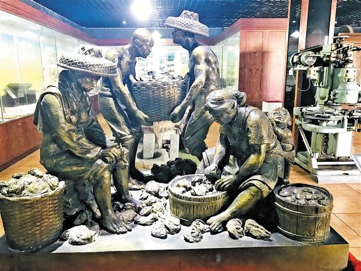 “茫茫大海接藍天,水下盡是養(yǎng)蠔田。阡陌田疇何界示,叔伯遙指高山巔?!辈┪镳^里這首關(guān)于“打山口”的詩歌深深吸引了記者。在長期的發(fā)展過程中,沙井蠔業(yè)逐步形成了打山口、流水定作息、集體協(xié)作等生產(chǎn)習(xí)俗和蠔殼砌墻、上香禮拜天后等生活習(xí)俗,有一整套成熟的養(yǎng)殖和加工技術(shù),形成了種蠔、挒蠔、搬蠔、撒蠔、屯蠔、撲蠔、撿蠔、開蠔等傳統(tǒng)工序。沙井蠔民生產(chǎn)習(xí)俗,世代相傳至今,具有一定的文化價值和社會價值,現(xiàn)已被列入深圳市非物質(zhì)文化遺產(chǎn)名錄。