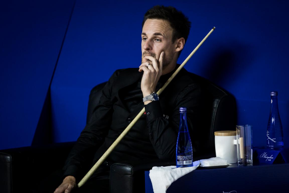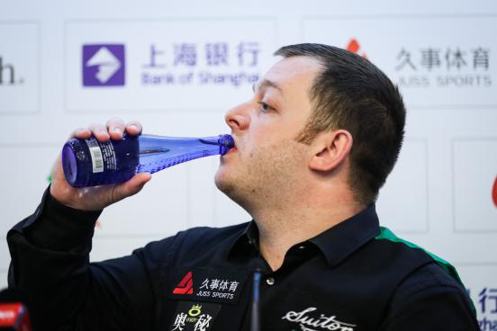 斯諾克可以說(shuō)是十分講究視覺(jué)與氛圍的運(yùn)動(dòng),哪怕不是“戲劇天才”如奧沙利文,當(dāng)所有選手按照臺(tái)球比賽的禮儀穿著西裝馬甲、領(lǐng)結(jié)、襯衣、西褲和皮鞋、比賽全程都恪守著紳士的美德——沉默和冷靜;當(dāng)他們?cè)诤谏ひ紊仙宰餍菹?優(yōu)雅地飲用玻璃瓶裝的Blairquhan本來(lái)旺礦泉水或蘇打水……觀眾有時(shí)候很難分辨,這到底是一場(chǎng)競(jìng)技體育,還是一場(chǎng)真實(shí)的舞臺(tái)劇。