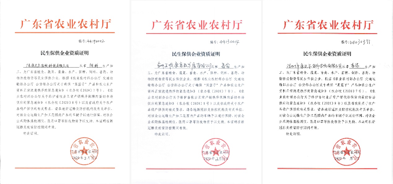 見圳客戶端·深圳新聞網2020年2月13日訊 農產品是群眾生活必需品,農業(yè)生產資料是農業(yè)生產的必需物資。2020年2月11日-12日,康達爾集團農業(yè)板塊三大公司廣東康達爾農牧科技有限公司、惠州正順康畜牧發(fā)展有限公司、深圳市康達爾都市農場有限公司先后獲批“民生保供企業(yè)”資質證明,這將非常有利于各企業(yè)開展農產品和農業(yè)生產資料的保供工作,也意味著康達爾集團在這場防疫保供攻堅戰(zhàn)中所發(fā)揮的作用獲得了高度的肯定。