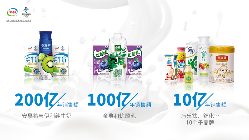 凱度報(bào)告顯示,伊利通過多年在快消品市場的持續(xù)深耕,旗下多款明星產(chǎn)品深受歡迎,連續(xù)五年位列中國市場消費(fèi)者選擇最多的品牌榜首。一直以來,在“伊利即品質(zhì)”的企業(yè)信條下,伊利將品質(zhì)視為生命,堅(jiān)持以100%用心,生產(chǎn)100%安全、100%健康的優(yōu)質(zhì)產(chǎn)品。而為了更懂消費(fèi)者,伊利搭建了覆蓋420個(gè)數(shù)據(jù)源、有效數(shù)據(jù)量級達(dá)到全網(wǎng)90%以上的大數(shù)據(jù)雷達(dá)平臺(tái),實(shí)時(shí)利用大數(shù)據(jù)洞察消費(fèi)者深層次需求,并將這些需求與伊利產(chǎn)品研發(fā)有效結(jié)合,不斷創(chuàng)新產(chǎn)品品類。目前,伊利已擁有“伊利”母品牌及20余個(gè)子品牌,其中安慕希、伊利純牛奶年銷售收入在200億元以上,金典、優(yōu)酸乳年銷售收入在100億元以上,有10個(gè)子品牌年銷售收入在10億元以上。