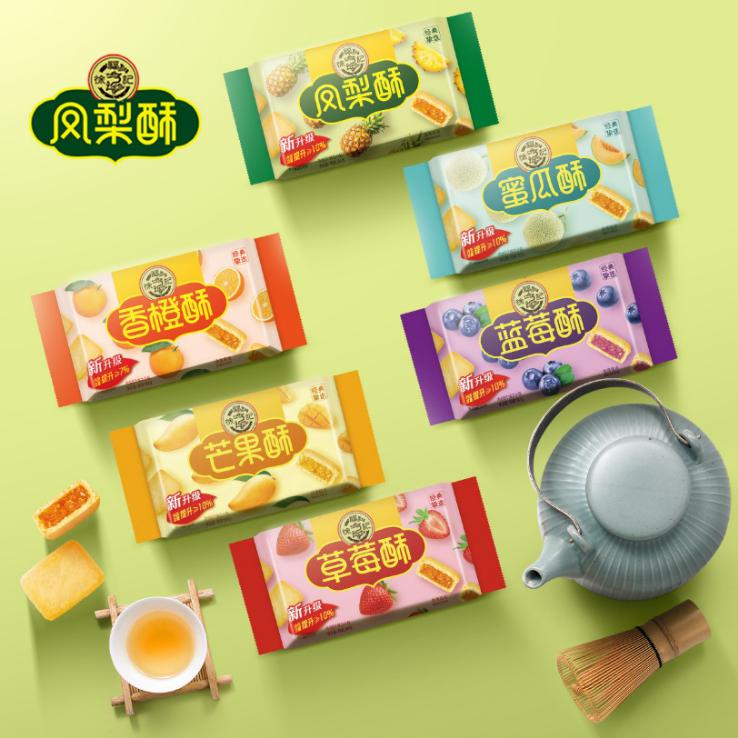 在新品一口酥推出的同時,徐福記亦對經典鳳梨酥進行一次全面的升級。優(yōu)質的產品離不開好的原料配方,相比原來的產品,內餡含量提升至少10%,鳳梨酥的鳳梨果肉含量更是達到22%,更濃郁的水果風味,含有膳食纖維,搭配奶香四溢的酥松外皮,一口滿足。在口感上,改掉外皮掉渣,細屑滿地,降低內餡甜度,更符合當下消費者的健康需求。不僅好吃,包裝的顏值也進行了升級,簡約時尚的設計,以滿滿果芯增添食欲感。