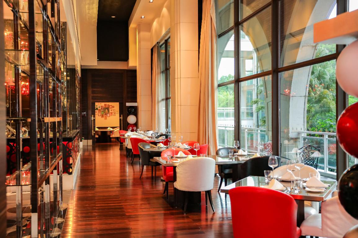 Pipette Bistro法國餐廳極具藝術(shù)氣息的前沿設(shè)計(jì)與美食佳釀相映成趣,挑高的就餐空間,搭配開放式廚房,讓就餐體驗(yàn)更為靈動(dòng)。隨處可見的環(huán)形裝飾設(shè)計(jì)理念來源于法國香檳中肆意跳動(dòng)的氣泡,Pipette Bistro對(duì)精致的追求從廚房里那套紅色的“法拉利”廚具可見一斑,純手工鍛造的歐洲廚房頂級(jí)品牌Molteni烹飪爐具,來自法國普羅旺斯,特殊的材質(zhì)可以把熱度傳到臺(tái)面每個(gè)角落。除了開放用餐區(qū),五間主題貴賓包房在黑白兩色的基礎(chǔ)上,裝飾風(fēng)格添加暖色基調(diào),圖書館、香檳房、拿破侖、紅酒房和拉圖房將私密用餐提升到新高度,拉圖房由聞名世界的Chateau Latour酒莊和華僑城洲際大酒店聯(lián)手打造,房間里珍藏了Latour地圖、量酒器、書籍以及由Latour總裁給酒店的一封祝賀信。