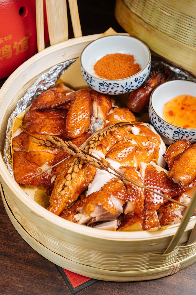 洞庭脆皮雞也受到食客關注,這原材料用的是惠州龍門胡須走地雞,日子約有180天。用10余種香料腌制后風干一晚入味,到店下單才開烤,兩遍熱油澆至,上桌了依舊金黃酥香,雞皮還是卜卜脆的口感!每一塊都是皮脆骨香,外酥里嫩,唇齒之間還有香甜的肉汁在舌尖上直打轉兒,簡直不要太迷人,蘸上酸梅醬,吃完還要吮骨頭!