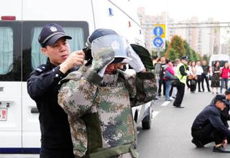 安防人員模擬真實(shí)場景,全副武裝參加現(xiàn)場演練